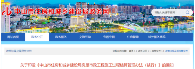 近日,中山市住建局印發(fā)《中山市住房和城鄉(xiāng)建設局房屋市政工程施工過程結(jié)算管理辦法(試行)》,自2023年1月1日起實施。