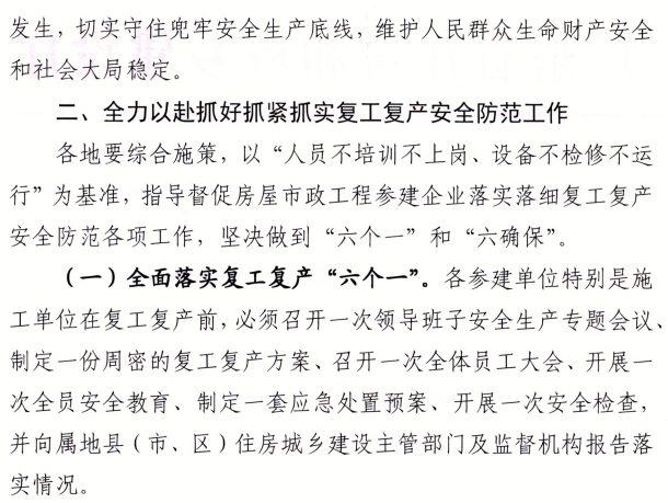 各參建單位特別是施工單位在復工復產(chǎn)前,必須
