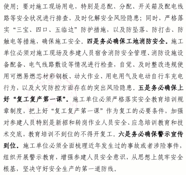 五是務(wù)必確保上好“復工復產(chǎn)第一課”。